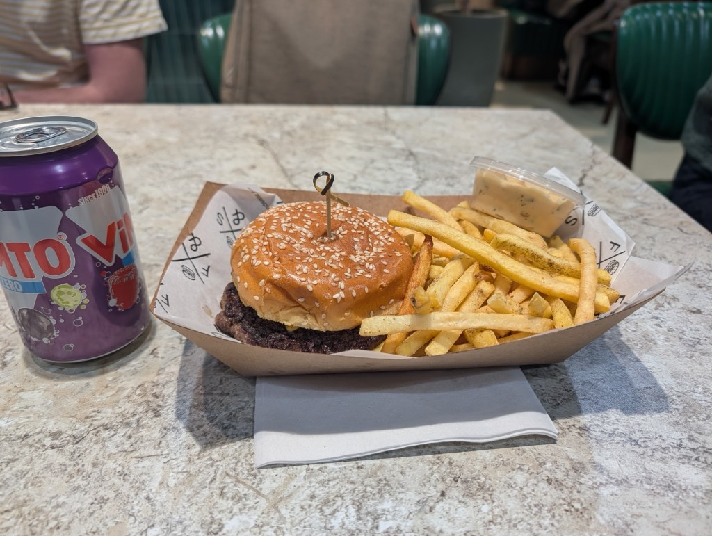 A classic cheeseburger (5oz NZ Grass-Fed Beef Patty, American Cheese, Sliced Red Onion & Flip Sauce in a Toasted Brioche Bun), with regular fries, house ‘flip’ sauce and a Vimto Zero, because I LOVED the 80s but 2020s me doesn’t need extra refined sugar. For Muslim readers, they’re all halal, so there’s a bonus if you need it.