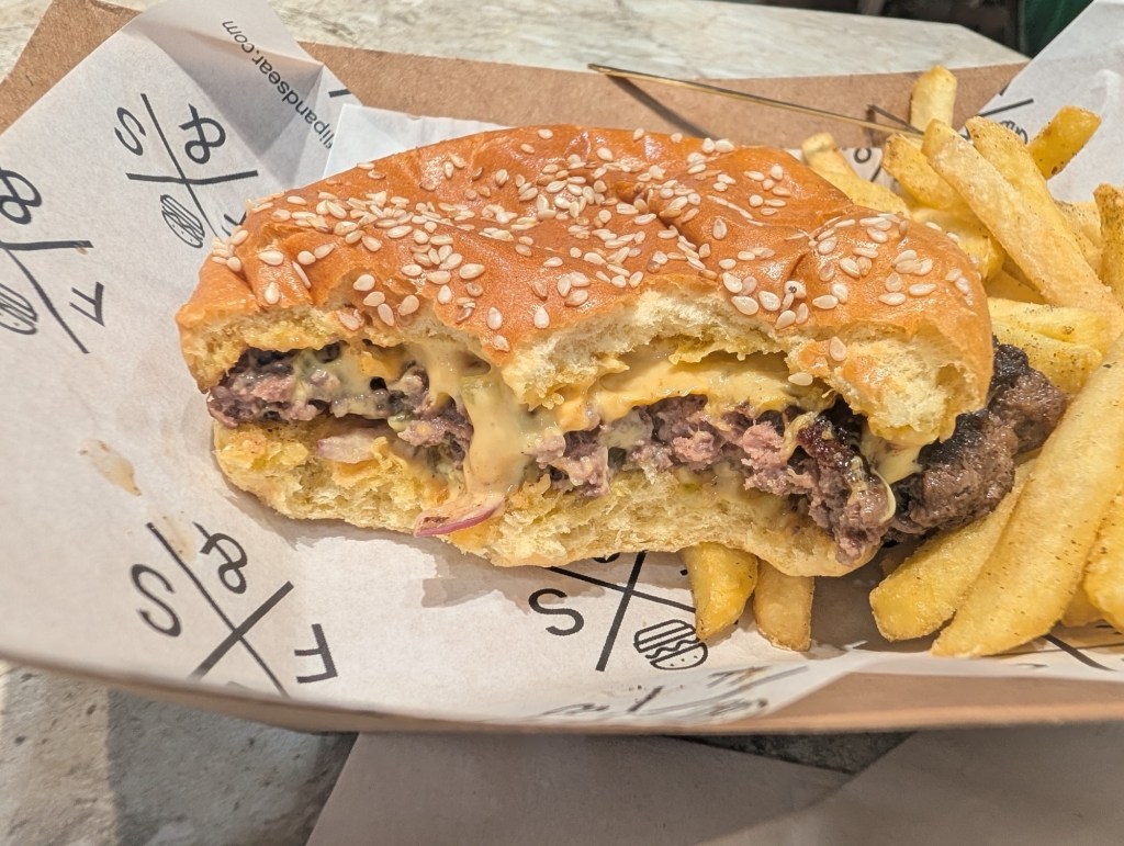 Well done, Flip & Sear. Known for its Wagyu (we didn’t stretch to it), it’s a highly rated burger spot founded by North London cousins Abu and Munib. And the idea of cousin-brothers working together on a project like this immediately made me fond of it. As with so many burger entrepreneurs (burgpreneurs? Entrepreburgs?), their focus is high quality ingredients, but they’ve made some interesting choices – including the Wagyu – that make the end result special.