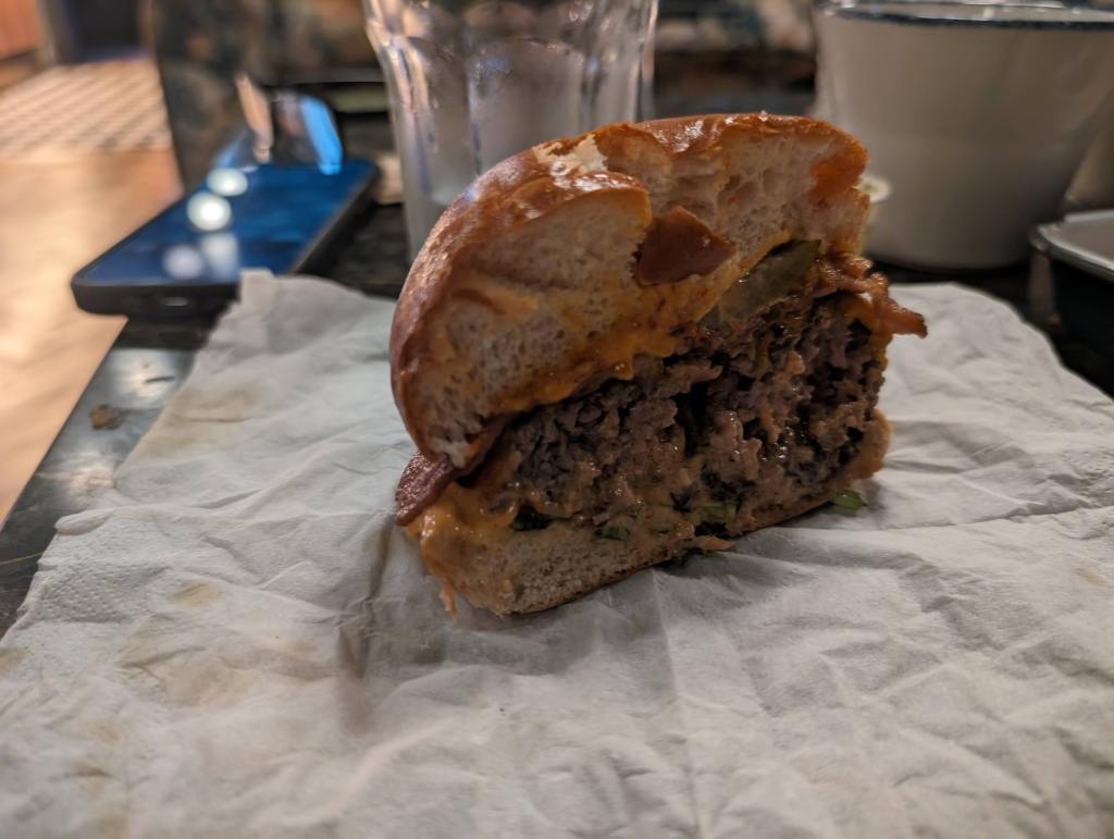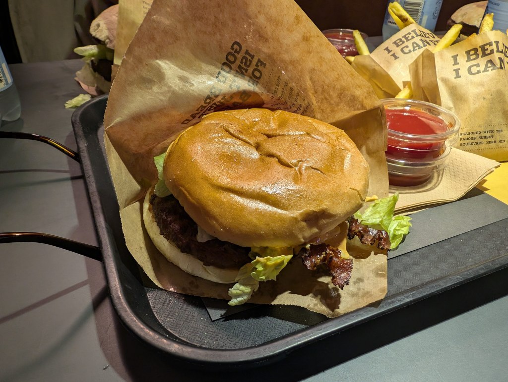 So far, so decent. Salad in the right place, good melt on the cheese, intriguing looking bun, skin on fries… I’m not regretting my life choices, yet. Did it last?