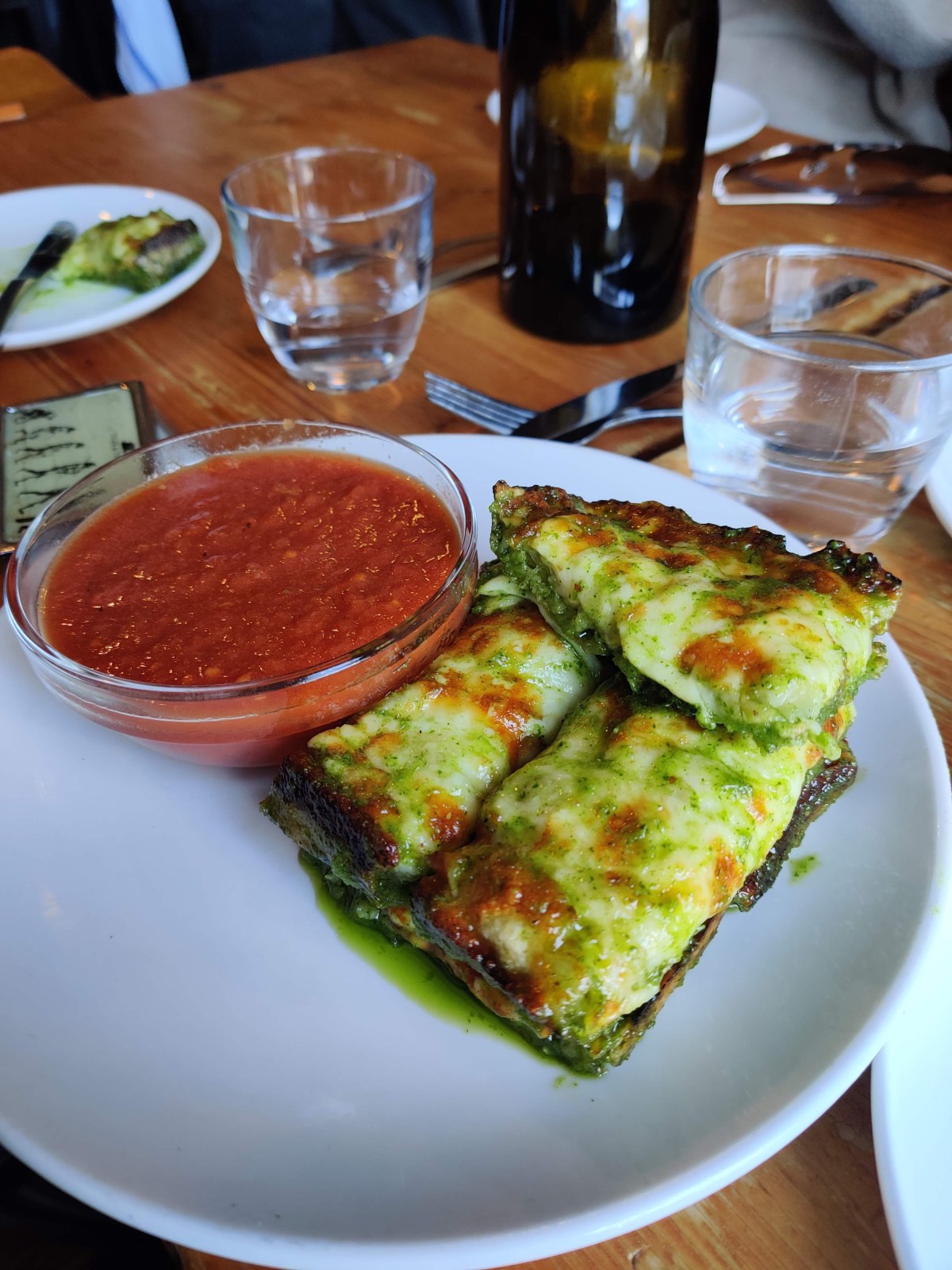 This delightful jenga stack of cheesey garlic bread sticks was a joy. Using the same base as the pizza, it seems, is a good call. Detroit style garlic cheese sticks served with a rich helping of garlicky, sweet and savoury marinara sauce – utterly wonderful. At $6, it’s one of the best value items on the menu and we were informed it’s been selling like hot cakes.