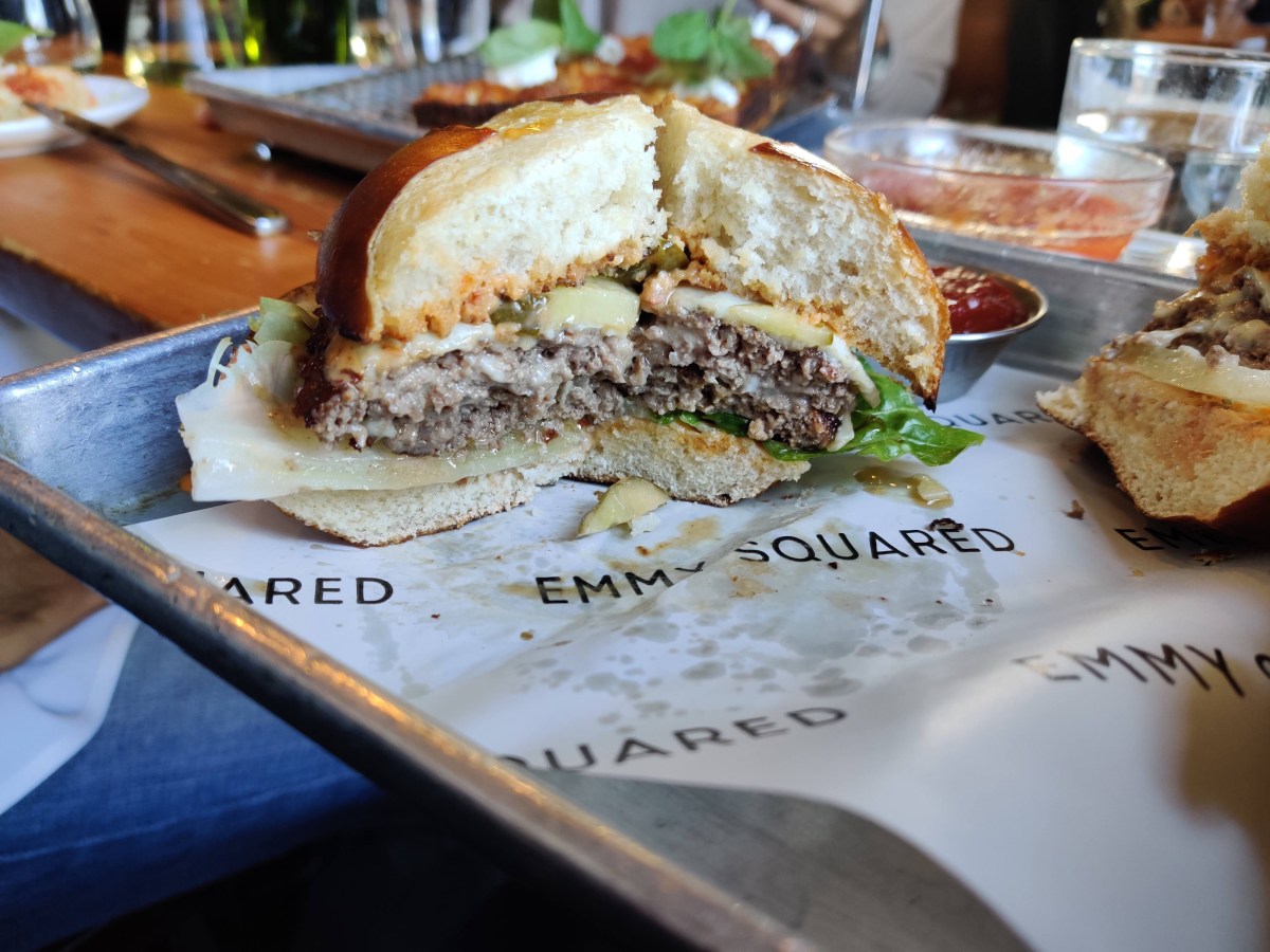 Founded in Williamsburg but growing across a few locations, this independent chain is the lovechild of entrepreneur Emma Hyland and Executive Chef Matthew Hyland. It’s primarily a pizza joint, serving Detroit-style pizzas, but the burger has received many plaudits. So we were excited!