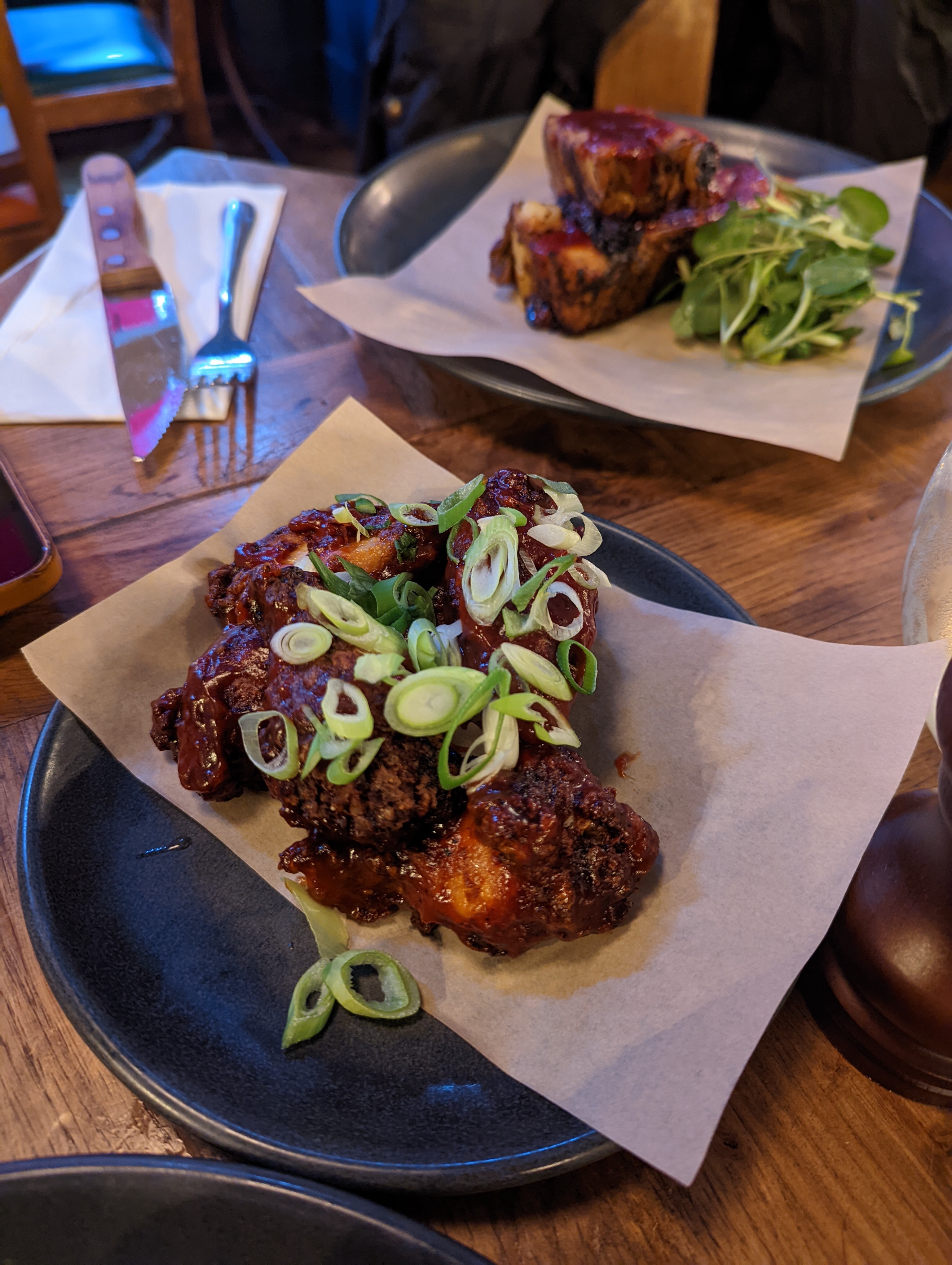 The Queen’s Head is a rural pub in the Berkshire countryside; not far from Reading and the M4 but sufficiently far away from it all that it feels like the middle of nowhere. The pub was described to me as ‘excessively dog friendly’ and, as Harley was joining us this evening, that was really the key criterion we were weighing up to eat here. As it happens, under new management since the Summer, the pub is clearly making an effort to build a reputation around its cuisine, billing itself as a pub/brasserie, and shifting between different seasonal menus throughout the year. The burgers, though, I think are staples.
