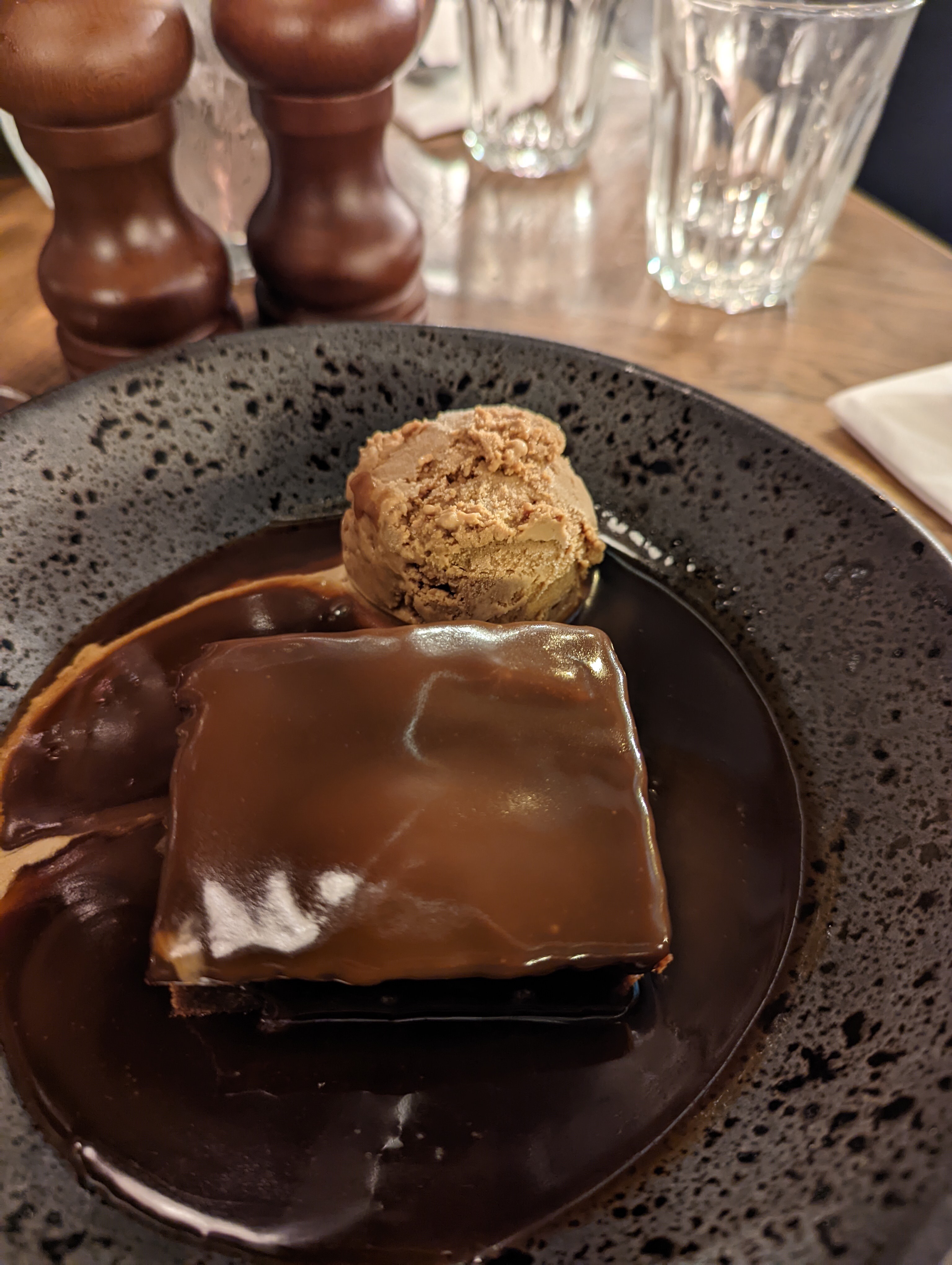 I did have a pudding (sorry, no picture) – a modest portion of sticky toffee pudding, served with ice cream. This was delicious, though if I’m being brutal the ice cream could have been lighter and the caramel sauce more generous. But excellent flavour combination, well made sauce, chewy dates in and amongst the light fluffy sponge of the pudding, with a swirl of light, sweet caramel sauce – yum.